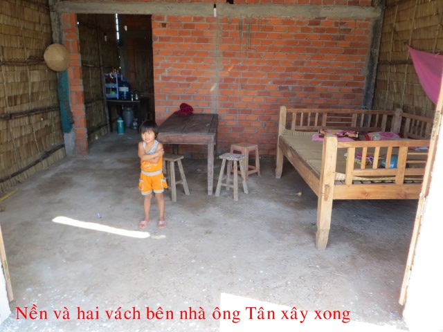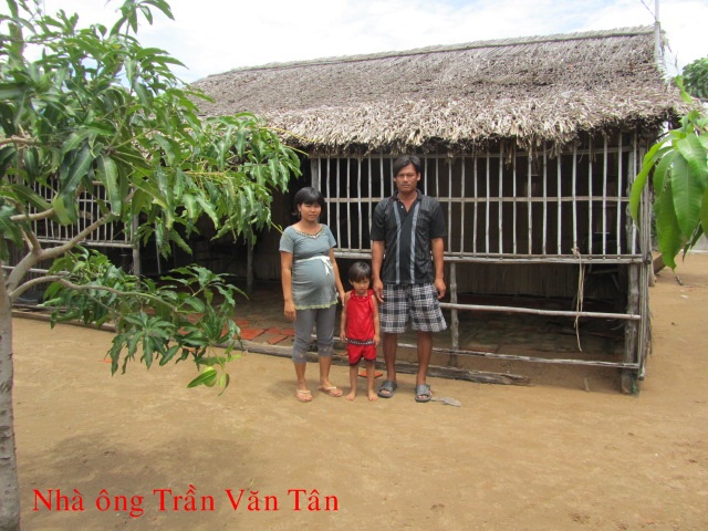 Mr. Tran Van Tan, age 35, is residing at Nha Dua, Thanh Hai Village, Thanh Phu with his wife, 1 child and a another on the way. He works as fisherman making 1- 1.5 dollas per day but again, it’s not a regular job. His house is rotten with termites and can fall down any moment now.