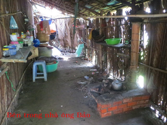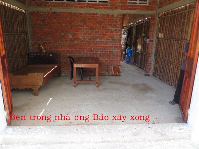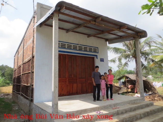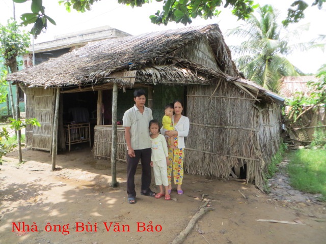 Ông Bùi Văn Bảo 37t ở ấp Thạnh Trị Thượng xã Mỹ Hưng huyện Thạnh Phú tỉnh Bến Tre. Gia đình có 4 người: vợ và 2 con. Lúc trước vợ ở nhà may quần áo thuê, thu nhập khoảng 1.5 USD/ngày, hiện nay không còn may nữa vì bị bệnh tim và 2 chân bị tê nên không làm được. Ông Bảo hàng ngày ai thuê gì thì làm nấy, nay bị bệnh gai cột sống nên không làm nặng được. Căn nhà được cất nay khoảng 5 năm, cột, lá đều mục mà không có tiền cất lại.