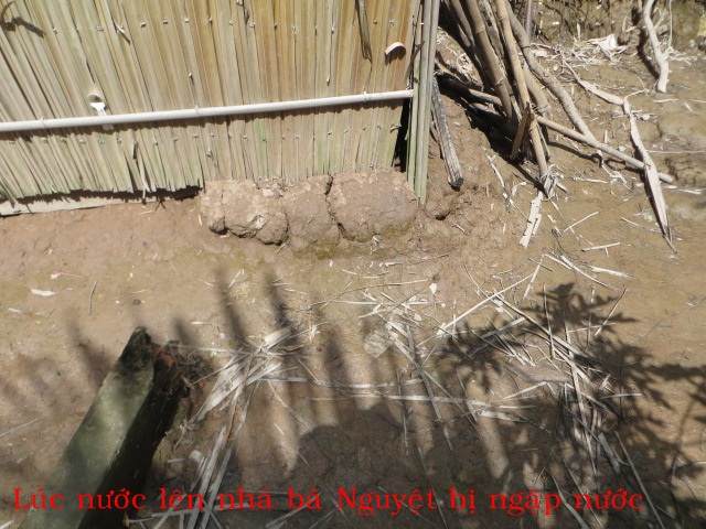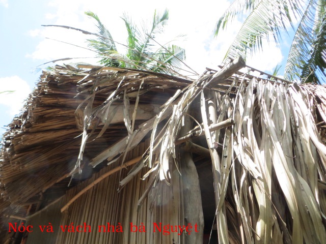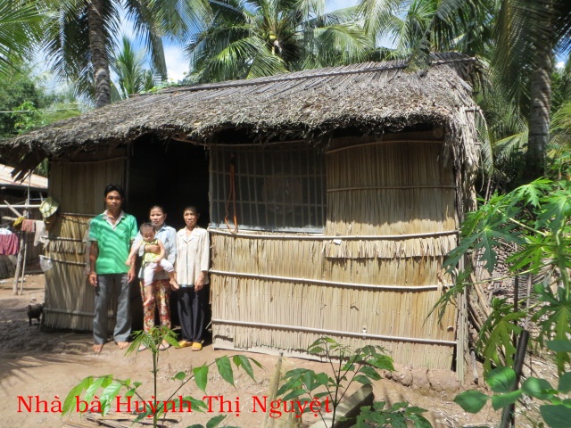 Bà Huỳnh Thị Nguyệt 58t ở ấp An Bình xã Mỹ An huyện Thạnh Phú tỉnh Bến Tre. Gia đình có 4 người: bà, 2 con và 1 cháu. Nhà không ruộng đất, hàng ngày cuộc sống ai thuê gì thì làm nấy nhưng vì ở quê bữa có bữa không nên rất bấp bênh. Căn nhà được cất nay khoảng 5 năm, mỗi tháng nước rong, triều cường lên thì toàn bộ sân và nền nhà đều bị ngập. Hiện tại nhà đang xuống cấp mà không có tiền cất lại.