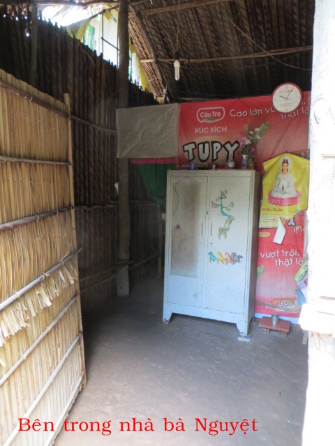 Mrs. Huynh Thi Nguyet, age 58, of An Binh Hamlet, My An Village, Thanh Phu, Ben Tre is living with her 2 children and a grandchild. They have no land to toil on, living by doing trivial things for hire but it's not regular work. Their house of 5 years is partly over flooded every month at the rising of the tide. It is deteriorating but they have no means to fix it.