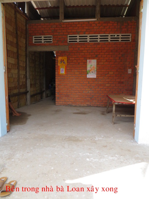 Bà Lê Thị Loan 36t. Chưa có số nhà ở ấp 5 xã Thạnh Phú huyện Thạnh Phú tỉnh Bến Tre. Gia đình có 4 người, vợ chồng và 2 con. Người chồng đi cuốc đất thuê không có nhà. Bà Loan hằng ngày mua bánh kẹo về bán dạo lại nhưng cuộc sống vẫn thiếu. Căn nhà được cất nay khoảng 10 năm. Tol trên nóc chủ vật tư lúc đó cho thiếu nhưng đến nay vẫn chưa trả nổi. Hiện tại căn nhà cột đã mục và vẹo qua một bên nếu không có cây Còng và cây Gòn mọc bên hông nhà chịu lại thì đã sập từ lâu. Những lúc trời mưa, có gió thêm một chút cả gia đình không dám ở nhà mà qua nhà hàng xóm trú ngụ vì sợ sập tol đè.