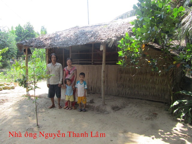 Mr. Nguyen Thanh Lam, age 35, is residing at Hamlet 8, Giong Chua, My Hung Village, Thanh Phu, Ben Tre with his wife and their 2 young children. He is working for hire but this is not a regular job. His wife stays home, taking care of the 2 kids and grating coconut pulp, making around 50 cents a day. They are putting up with a relative. A piece of land was given to them to build their own house but they cannot afford to do it.