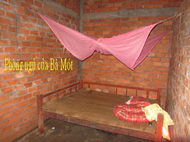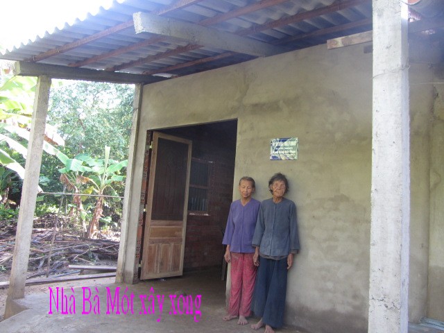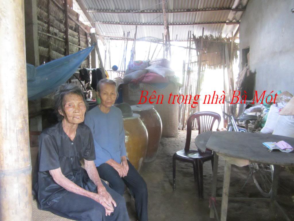 Mrs. Nguyen Thi Mot, age 87,is of 60/5 Thanh Hoa B Hamlet, Thanh Phu Townlet, Thanh Phu District, Ben Tre. She lost one eye and her mouth was deformed after a stroke. She is living with her daughter Nguyen Thi Cai, age 59, having no job. Every day mother and daughter go picking greens on the road for sale and make the most VND 20,000 (USD 1) which hardly makes it for their daily meal and they would go starve on days when the greens cannot be found on the road. During the rice harvest, they would go and glean rice in the fields