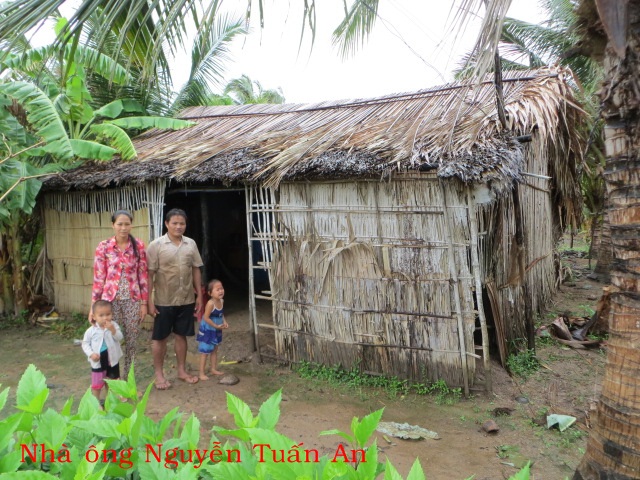 Mr. Nguyen Tuan An, age 30, of Hamlet 6, My Hung Village, Thanh Phu District is living with his wife and their 2 children. They have no land to toil on. Mr AN works for hire, doing trivial things and just makes it to feed his family day by day. His 6 yer-old wood house is rotten and on the verge of collapse but they have no means to rebuild it.