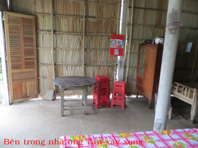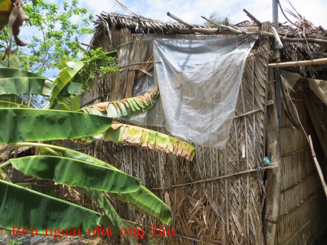 Ông Nguyễn Văn Tán 46t ở ấp An Ngãi xã An Thạnh huyện Thạnh Phú tỉnh Bến Tre. Gia đình có 5 người: vợ chồng và 3 con, đứa con lớn đi phụ việc nhà cho chủ, ông Tán đi vác đất thuê không nhà. Không ruộng đất. Căn nhà căn nhà được cất nay hơn 8 năm, bị dột nát chỉ còn cọng lá, bên trong phải che mủ mới ở được. Hiện tại không có tiền cất lại.