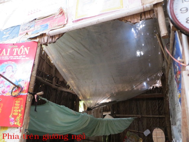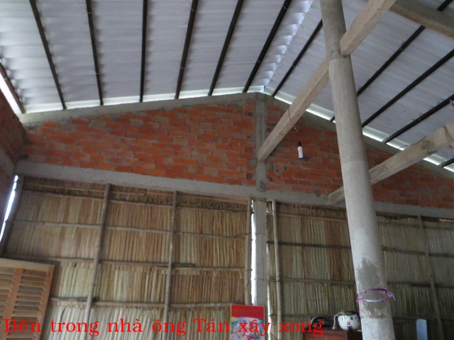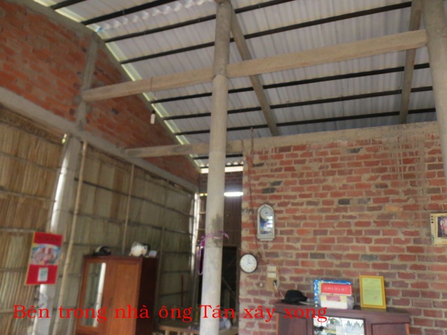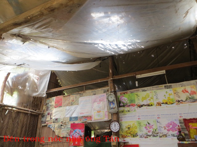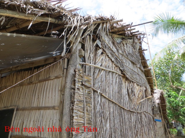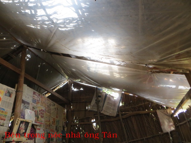 Mr. Nguyen Van Tan, age 46, is residing at An Ngai Hamlet, An Thanh Village, Thanh Phu, Ben Tre with his wife and their 3 children, the oldest of them is doing house chores for a family. Mr. Tan works for hire, carrying soil. They have no land to toil on. Their 8 year-old house is leaking and rotten and plastic cover is put up to protect them from the rain. They have no means to fix the house.