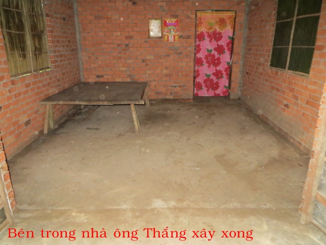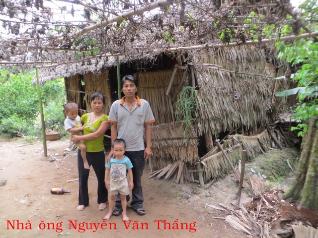 Ông Nguyễn Văn Thắng 37t ở ấp Trung Nhân xã Nhuận Phú Tân huyện Mỏ Cày Bắc tỉnh Bến Tre. Gia đình có 4 người: vợ và 2 con. Cuộc sống hàng ngày của vợ chồng ai thuê gì thì làm nấy: vác đất, cuốc cỏ, xe đất… nhưng chỉ đủ mua gạo. Nhà không ruộng đất, chỉ có 1 nền nhà ở. Căn nhà được cất nay hơn 6 năm, hiện tại có thể sập bất cứ lúc nào.