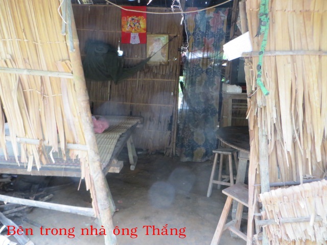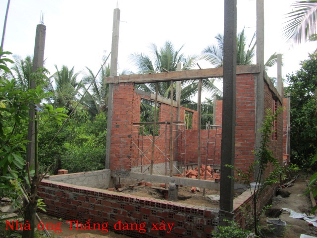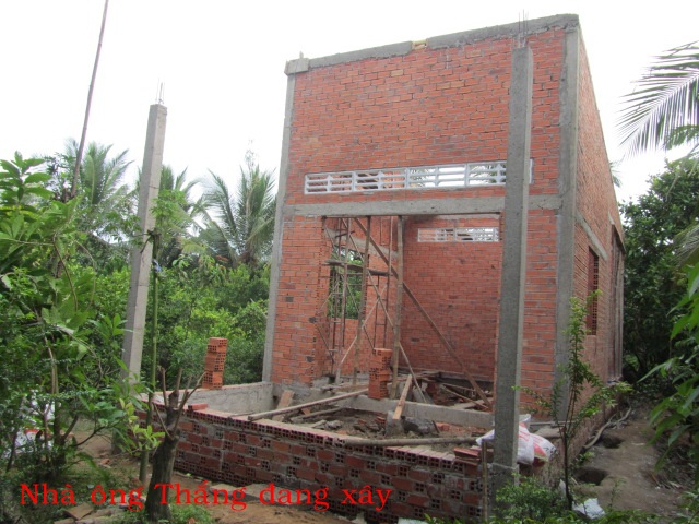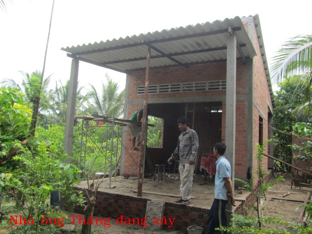 Mr. Nguyen Van Thang, age 37, of Trung Nhan Hamlet, Nhuan Phu Tan Village, Mo Cay North, Ben Tre, is living with his wife and their 2 children. They work for hire, carrying soil, hoeing up the weeds just enough to make their daily meals. Their house of 6 years is on the brink of collapse any time
