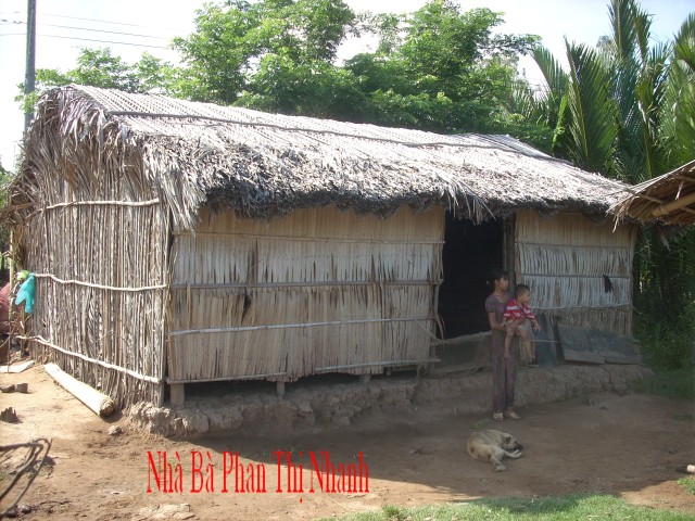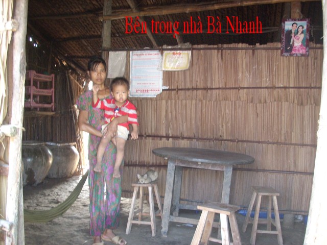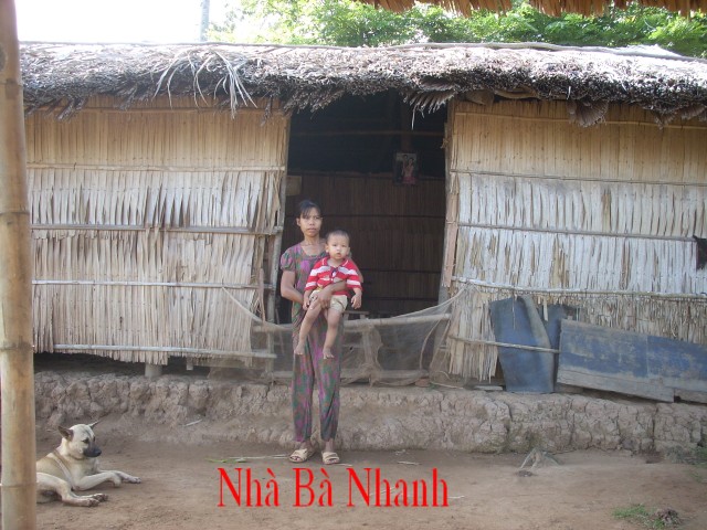 Mr. Le Van Thanh, age 33 and his wife Phan Thi Nhanh have 2 sons and a daughter. The oldest is 5 and is at kindergarten while the youngest is 3. They have no land to toil on. Since he could not find a job in his native land, he went to Long Khanh to work for hire, picking pepper and cashew nuts to feed his family while his wife stays home and takes care of the kids. Their house was built on pillars with the help of neighbors. The pillars are now worn out and must be replaced but they can’t afford to do so. The money he is making is just enough to provide food for the family.