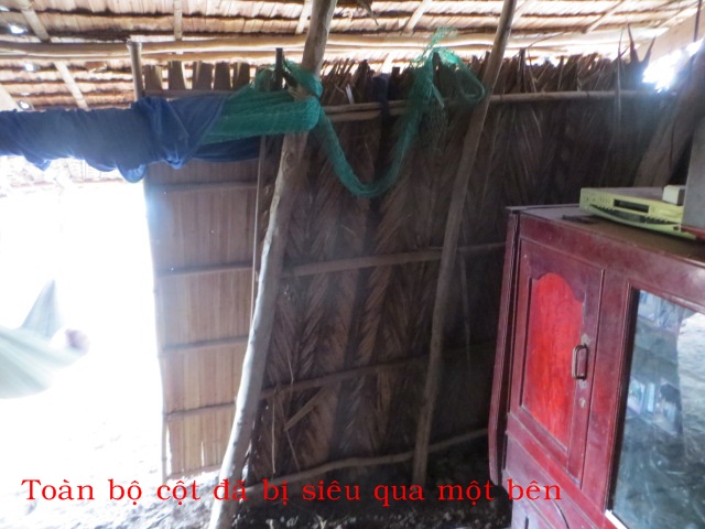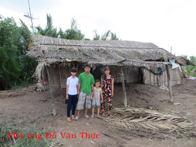 Ông Đỗ Văn Thức 35t ở ấp An Thạnh xã An Thạnh (Bến Vinh) huyện Thạnh Phú tỉnh Bến Tre. Gia đình có 4 người: vợ chồng và 2 con. Nhà không ruộng đất, hàng ngày ông Thức ai thuê gì thì làm nấy. Vợ ở nhà cũng vậy (gặt lúa, nhổ cỏ thuê). Căn nhà được cất nay hơn 7 năm. Hiện tại tất cả các cột bị xiêu qua một bên, nếu không có dây đổi thì sẽ sập bất cứ lúc nào. Hàng ngày vợ chồng thu nhập chỉ đủ mua gạo và cho 2 con đi học nên cuộc sống rất vất vả. Căn nhà sắp sập mà không có tiền cất lại.