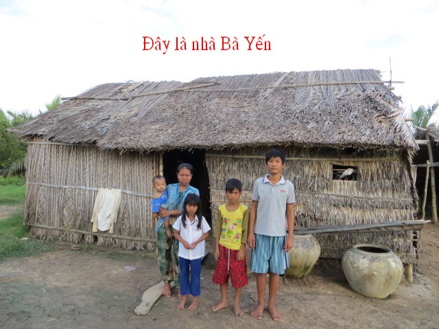 Mrs. Nguyen Ngoc Yen, age 32 and her husband Nguyen Van Gan, age 40, are living with their daughter and 3 sons at No. 80/2 Thanh Tan Hamlet, Binh Thanh Village, Thanh Phu District, Ben Tre Province. Mr. Gan is working away from home, making 100,000VND (5 USD a day. His wife weaves cords from tree bark, making 8,000VND (15 cents US). This is not enough to feed a family of 5 and makes their lives miserable.