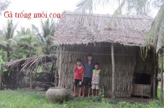 Mr. Nguyen Van Den, age 40, of 22/1 Thanh Hoa A Hamlet, Thanh Phu Village, Thanh Phu, Ben Tre, is living with his 2 sons. His wife ran away leaving him with their 2 sons, the baby was only 8 months old at the time. The older son is now in grade 7 and the younger one in grade 5. He works as constructor helper, making USD 5 per day but this is not a regular job. With this unstable income, it's not enough to feed the 3 on a regular basis. The only valuable thing in the house is their bed. They wish to have a decent house to live in.