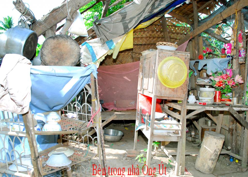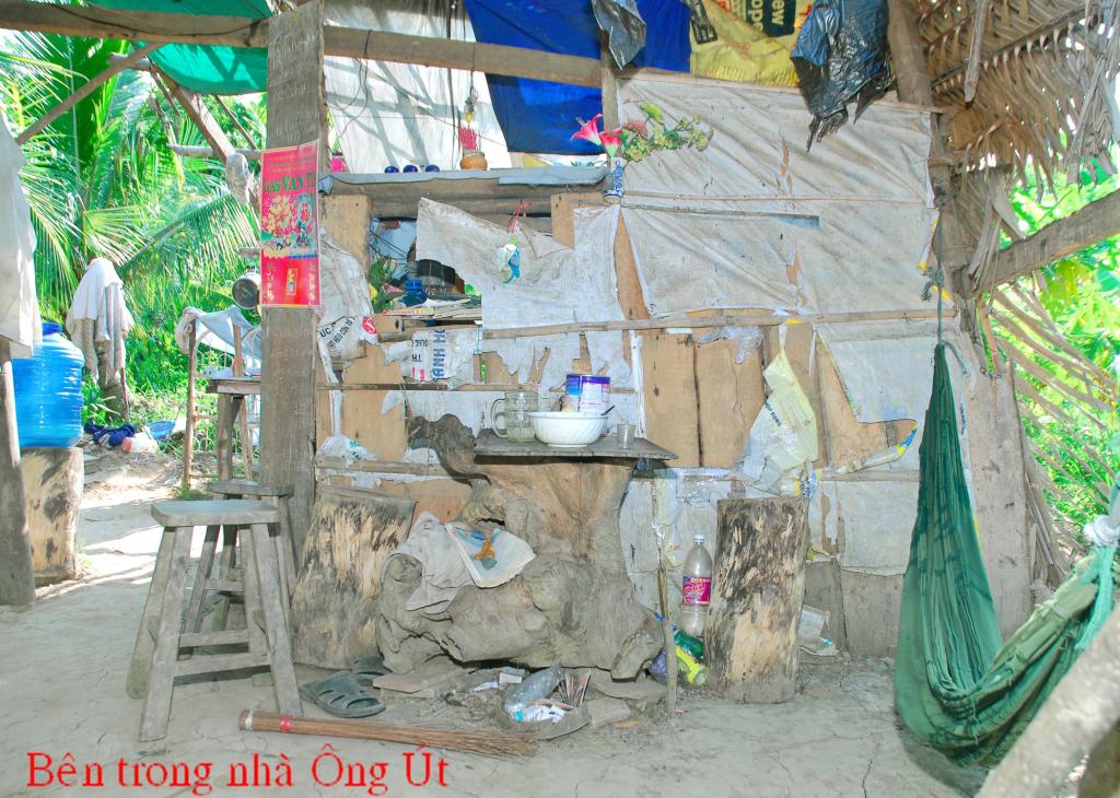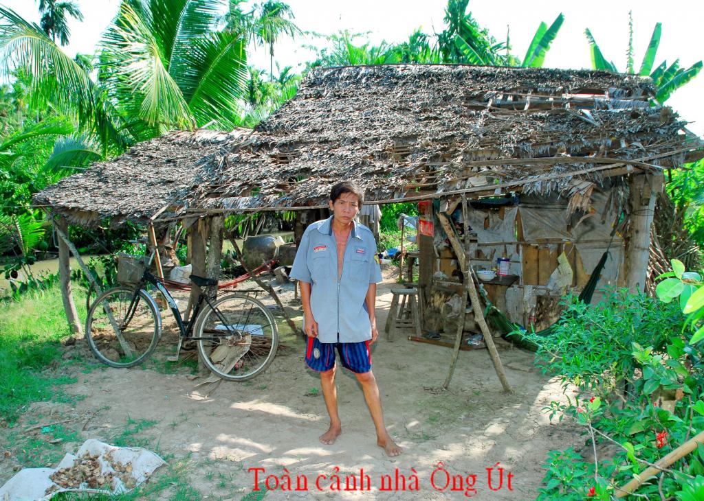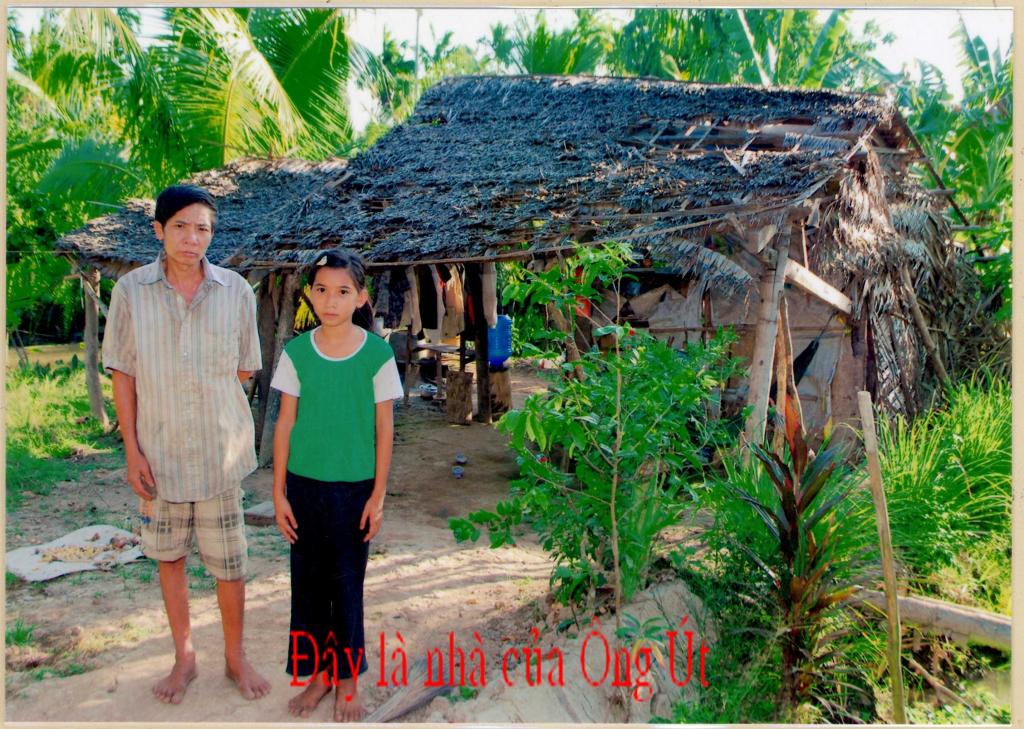 Mr.Nguyen Van Ut, born 1967, is living in a house with no number in Hamlet 6, Luong Hoa Village, Giong Trom District, Ben Tre Province. His wife left him and their daughter daughter Nguyen Thi Anh Nguyet , born in 2001, due to destitution. He is working for hire, working soil and mud, making $US 5 a day but it's an unstable job. On days when work is not available, they live on the charities of the neighbors. His empty house is leaking with rotten roof and he desperately needs a place to live.