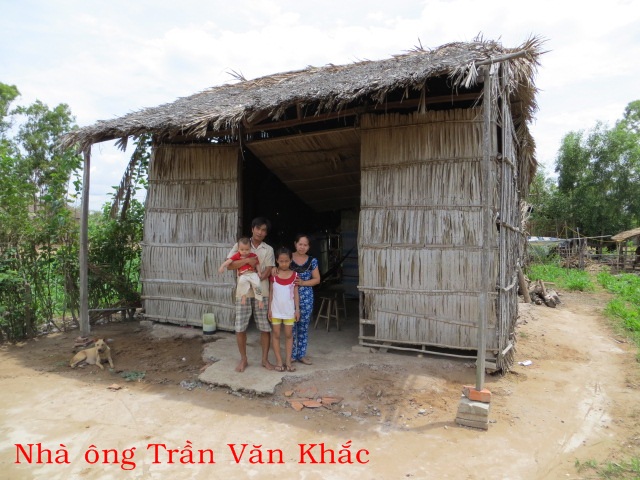Mr. Tran Van Khac, age 34,of Con Loi , Thanh Hai Village, Thanh Phu District, Ben Tre Province is living with his wife and their 2 children. Both husband and wife are working for hire, doing any trivial thing available. Their house of 7- year-old has dilapidated roof and rotten pillars but they had no means to fix those problems.