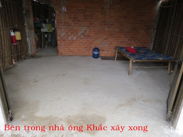 Ông Trần Văn Khắc 34t ở Cồn Rừng xã Thạnh Hải huyện Thạnh Phú tỉnh Bến Tre. Gia đình có 4 người: vợ chồng và 2 con. Hàng ngày cả 2 vợ chồng đi làm thuê, nhổ cỏ, cuốc đậu…nói chung ai thuê gì thì làm nấy. Căn nhà được cất nay hơn 7 năm, hiện tại nóc bị dột nát, cột bị mục đứt chân mà không có tiền cất lại.