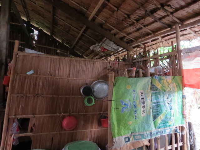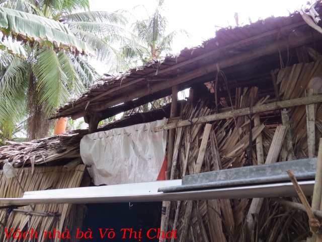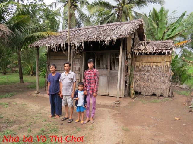Mrs. Vo Thi Chơi, age 70, is living in Phu Long Phung Hamlet, Phu Khanh Village, Thanh Phu District, Ben Tre Province with her 2 children and a grandchild. They have no land to toil on. She got a stoke and her son is down with serious cardiac complications. The daughter-in-law is working for hire and the family live in destitute. Their 10 year-old house was built on old pillars given by a relative which are now rotten with termites and they have no way to fix it.