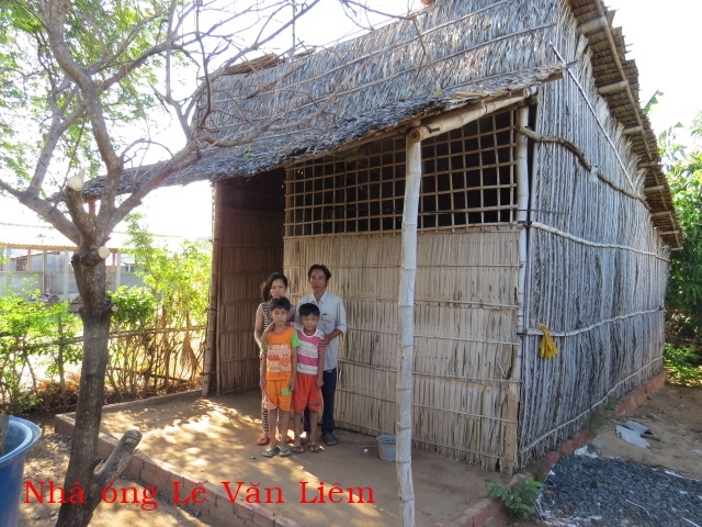 Ông Lê Văn Liêm 44t, ở ấp 6 xã An Nhơn huyện Thạnh Phú tỉnh Bến Tre. Gia đình có 4 người: vợ và 2 con. Ông Liêm bị sạn thận phải đi bệnh viện thường xuyên. Cuộc sống ở nhà chủ yếu do vợ đi làm thuê, nhà không có ruộng đất. Căn nhà làm bằng cột tre nay khoảng 4 năm. Hiện tại cột bị mục, nóc bị dột từ trong ra ngoài.
