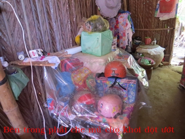 Mr. Le Van Liem, age 44, of Hamlet 6, An Nhon Village, Thanh Phu District, Ben Tre Province is living with his wife and their 2 children. He got kidney stone and has to be frequently at the hospital for treatment. His wife became a breadwinner, working for hire. They have no land to toil on and their house of 4 years is in very bad shape with rotten bamboo pillars and leaky roof.