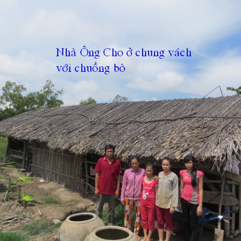Mr. Le Van Cho, age 37 and his wife Tran Thi Phan, age 34, of 50/3 Thanh Binh Hamlet, is living with their 3 daughters: Le Thi Tuyen, age 15, Le Thi Cam, age 14 and Le Thi Yen Nhi, age 11. The 2 older daughters had to quit school and work to help their parents. He works by carrying rice for others but his wife stays home. The 4USD they make every day is just enough to live by. He has a piece of land but cannot afford to build a house and they are living in a shelter, sharing the wall with the neighbour's cow stable.