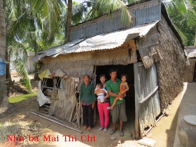 Bà Mai Thị Chi 71t ở ấp An Bình xã An Quy huyện Thạnh Phú tỉnh Bến Tre. Gia đình bà có 5 người: bà, 2 con và 2 cháu. Bà bị đau nhức và lớn tuổi nên không lao động được. Hàng ngày 2 con bà đi làm thuê đủ thứ việc để kiếm sống nhưng chỉ đủ mua gạo. Gia đình không ruộng đất, nền nhà đang ở cũng là của người bà con cho. Hiện tại căn nhà bà sắp sập, nóc và vách đều bị dột nát.
