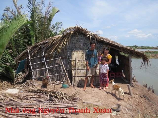 Ông Nguyễn Thanh Xuân 35t ở ấp An Khương B xã An Điền (Cả Cát) huyện Thạnh Phú tỉnh Bến Tre. Gia đình có 4 người: vợ và 2 con. Ông Xuân bị tật ở tay co rút một bên nên không lao động nổi, công việc làm thuê chủ yếu là người vợ. Hai bên cha mẹ nghèo nên không giúp đỡ được. Nhà không ruộng đất, hiện tại căn nhà sắp sập mà không có tiền cất lại