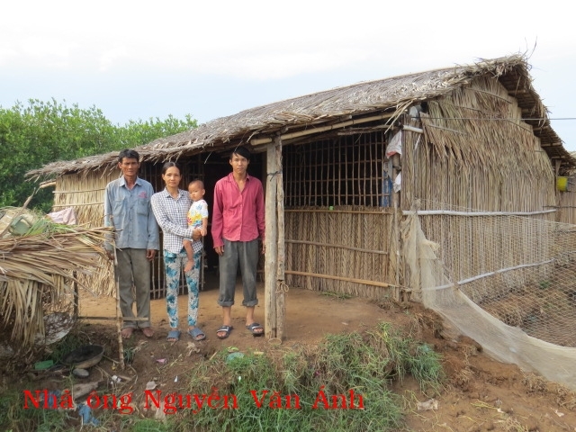 Mr. Nguyễn Van Anh, age 50, of Nha Dua, Thanh Hai Village, Thanh Phu District, Ben Tre Province is living with his wife, their son and grandchild. The daughter -in-law left her husband and child due to poverty. The whole family is putting up with a friend. They were given a piece of land but had no money to build up a place to live. He got tuberculosis and cannot do heavy job. His wife and son work as labors but hardly meet their ends.