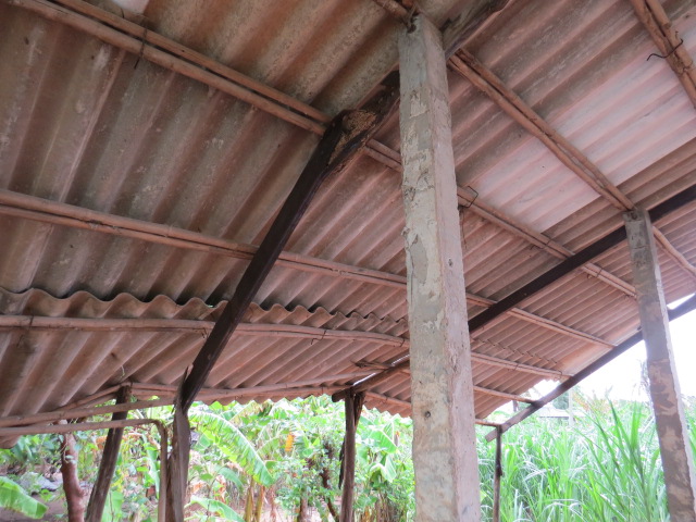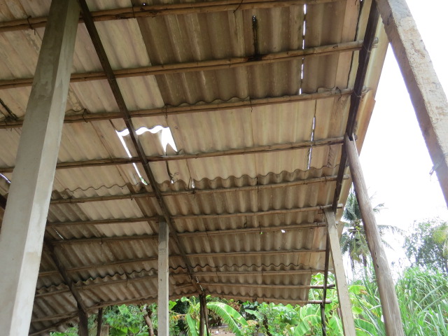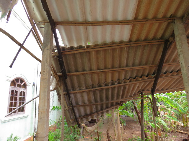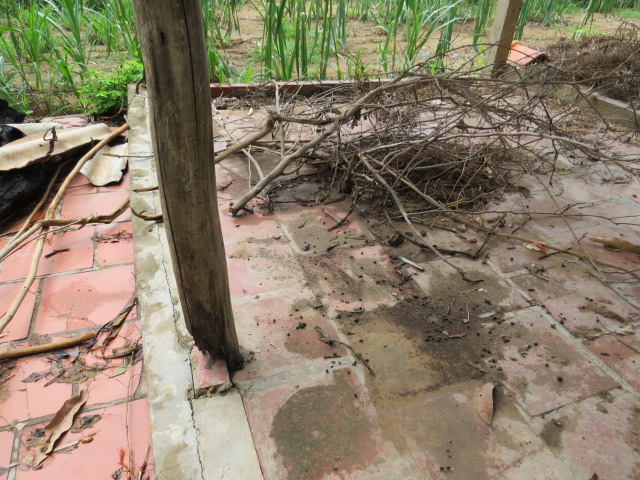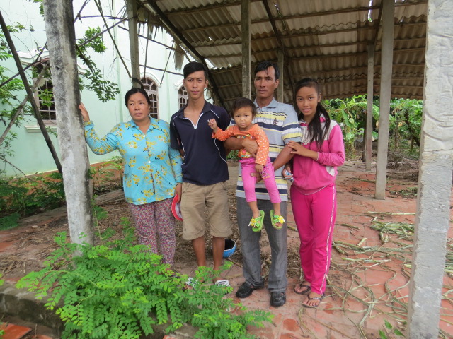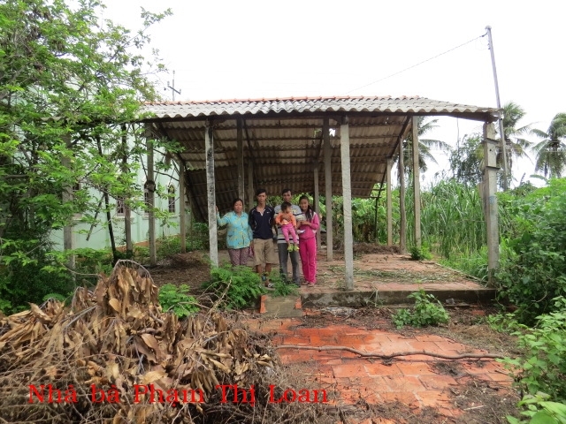 Mrs. Pham Thi Loan, age 40, of Cu Neo, Thanh Phong Village, Thanh Phu District, Ben Tre Province, is living with her husband and their 3 children. Her house of 15 years had a metal sheet roof and concrete pillars but they had been replaced with walls made of dry leaves and pillars of tree trunks which are getting rotten and on the verge of collapse so the family have been put up with friends for over a year now. The whole family can barely make enough to live on, let alone having their house fixed.