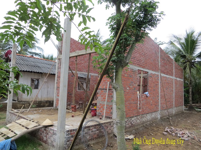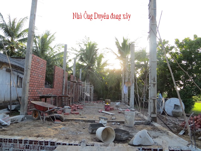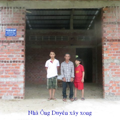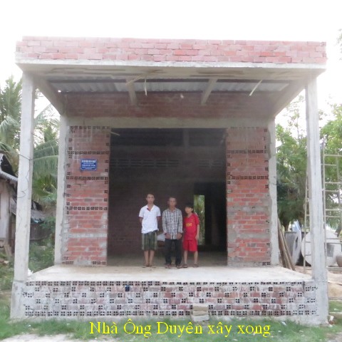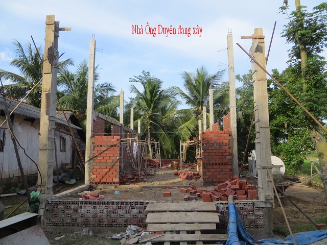Gia đình ông Duyên cố gắng xây 1 căn nhà có đủ bốn tường bằng gạch, vì thế tiền xây đã vượt quá số tiền bảo trợ xây nhà lúc bạn đầu. Một trong những ly' do nửa là vì bây giờ vật giá leo thang nên số tiền của chúng ta cho lúc ban đầu cũng không đủ để xây được 1 căn nhà. Và đây cũng là ly ' do chúng ta đã tăng tiền xây nhà bắt đầu năm 2016.