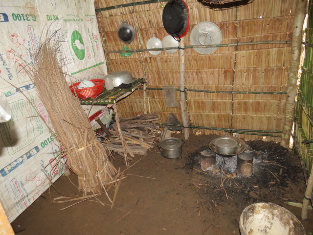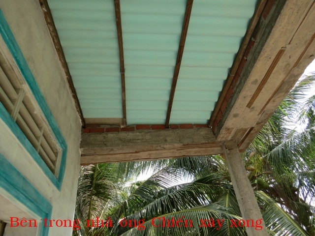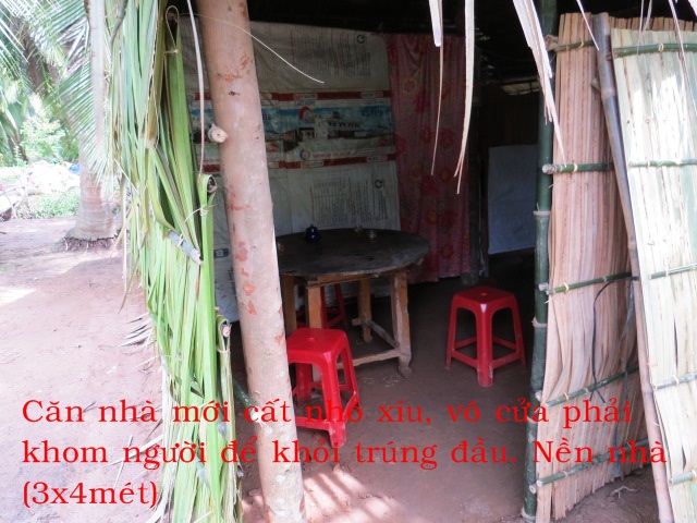 Mr. Tran Van Chien, age 41 and his wife Ngyen Thi Sang, age 38, of Xuong Thoi 3 Hamlet, Thoi Thanh Village, Thanh Phu District, Ben Tre Province are living with their 3 children. Mr. Chien is working for hire at Con Huou. The eldest son is studying away from home, Their house of 9 years collapsed and a small shelter was temporarily built up with bamboo pillars and a leaf roof that get rotten with time.