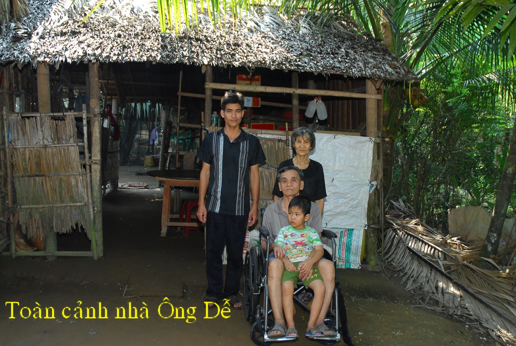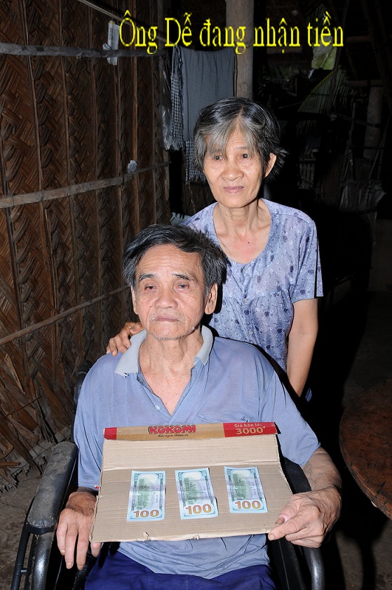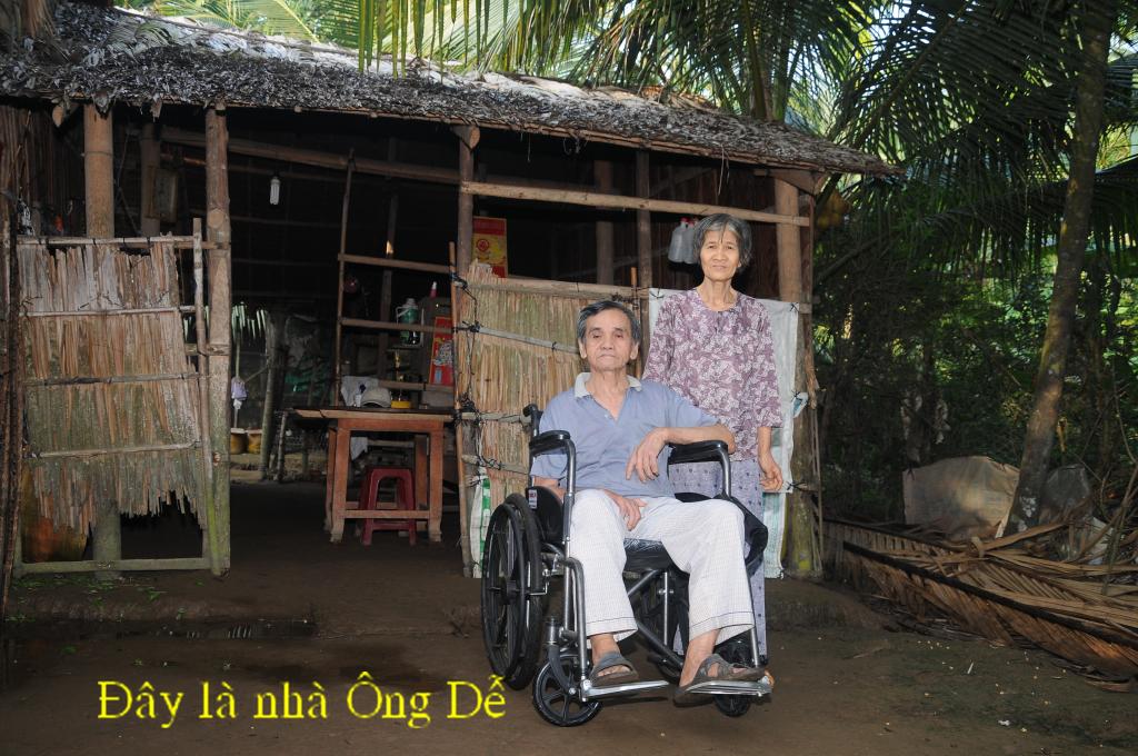 Ông Trần Văn Dễ 71 tuổi,vợ là bà Nguyễn Thị Kim Sa, 65 tuổi. Địa chỉ ấp 6 xã Hoà Lợi, huyện Giồng Trôm, tỉnh Bến Tre. Ông có người con trai 35 tuổi đã có vợ và có 2 con nhỏ. Bé trai lớn 4 tuổi bị bệnh tự kỷ và cháu nhỏ mới sanh. Do nghèo nên con trai của Ông Dễ cũng phải bỏ nhà đi làm thuê mướn kiếm sống mỗi ngày được 120.000 đồng (6 đô) thì không thể nuôi được 4 người. Chỉ còn Ông Dễ bị bệnh tai biến phải ngồi trên xe lăn cho vợ chăm sóc còn vợ cũng không nghề nghiệp gì mà phải hàng ngày chăm sóc cho Ông. Hàng tháng được bà con hàng xóm thương tình giúp đỡ.
