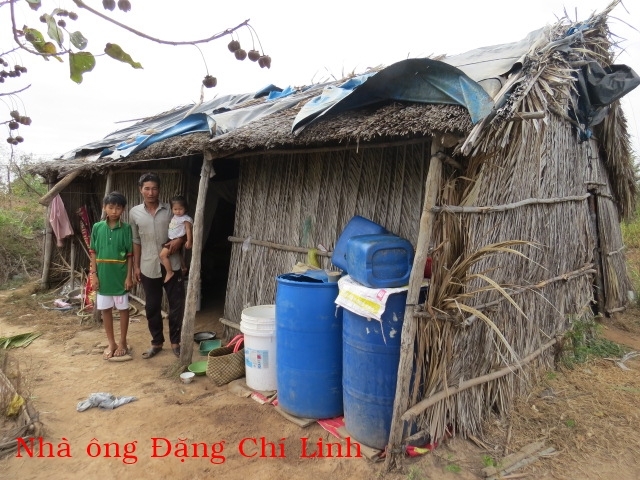 Mr. Dang Chi Linh, age 38, resides at Thanh Hai villageThanh Phu district, Ben Tre province with his 2 children. Because of poverty, more than 1 year ago his wife left him husband and rhe children. Mr. Linh works as a hirehand to a fisherman to make a living; a relative takes care of his 2 children while he is at sea every other day. The house is about to collapseand they do not have any means to rebuild..