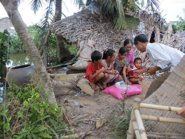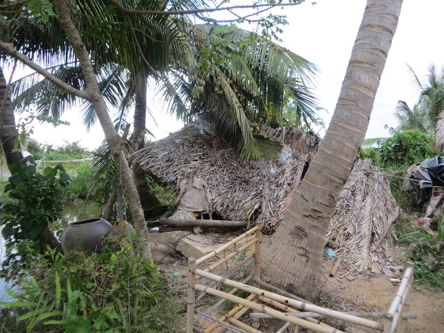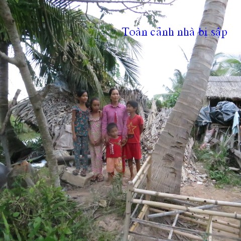 Mrs. Nhanh Thi Ho, 36 years old, living with her 38 year old husband, Mr. Hong Van Tran, and their four children at 8/1, An Hoi sub-hamlet, An Thuan hamlet, Thanh Phu district, Ben Tre province. All their children are students still. The family’s house has collapsed but they cannot afford to have it rebuilt.