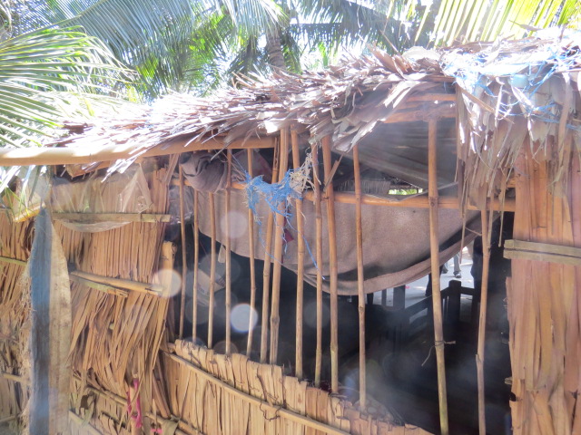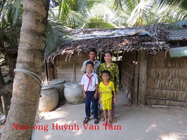 Mr. Huynh Van Tam, age 37, resides at Phu Huu hamlet, Phu Hung village, Ben Tre city with his wife andtheir 2 children. They do not own any land; Mr. Tam works as day masonry contractor while his wife works odd jobs. The house was built over 8 years, the posts are rotten, the roof is leaking and could collapse at any time. Their daily income is only enough to buy rice and send children to school so they do not have any means to rebuild the house.