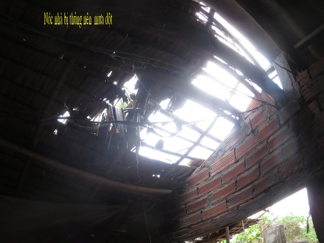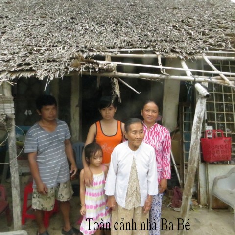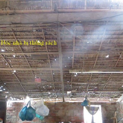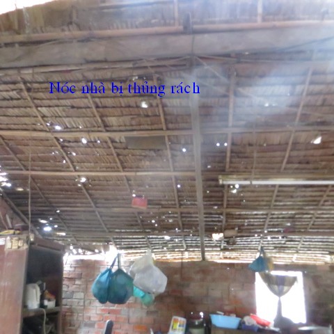 Ms. Ngo Thi Be, age 78, resides at Thanh Tri Thuong hamlet, Thanh Phu village, Thanh Phu district, Ben Tre province.years of age. Therea re 5 people living in her house, the walls and roof are tattered and leaked, but they do not have money to rebuild it.