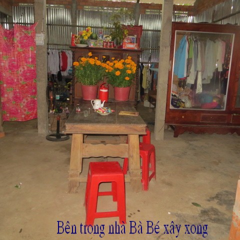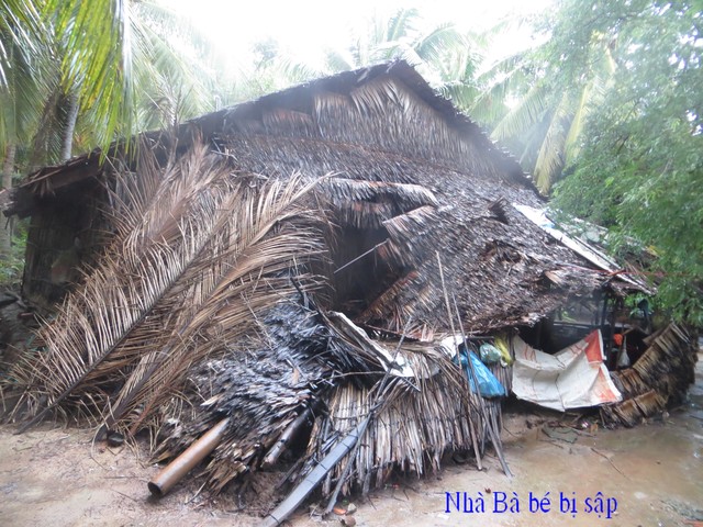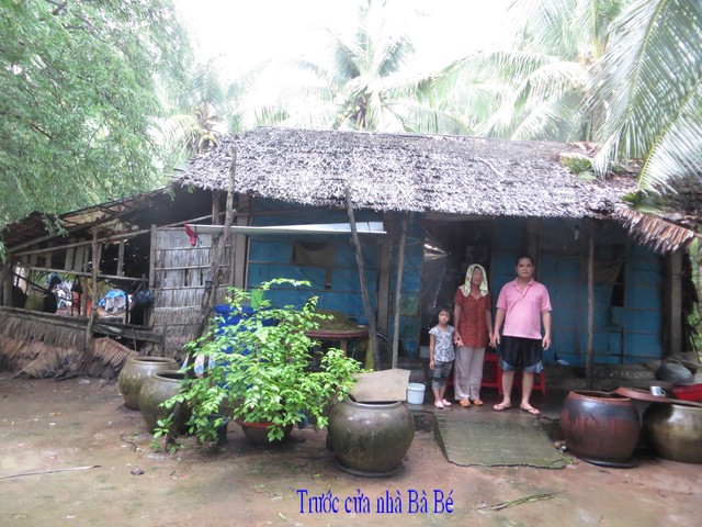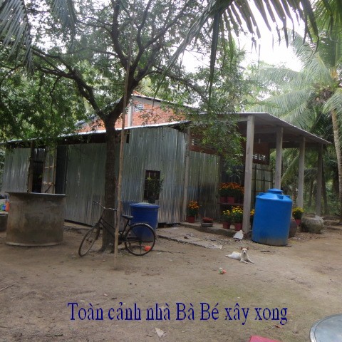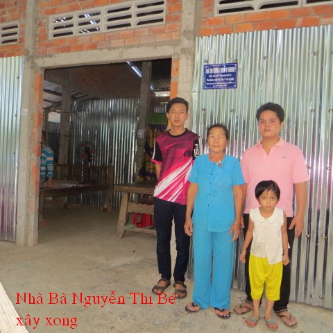 Bà Nguyễn Thị Bé, 67 tuổi. Số nhà 5/6 ấp Thạnh A, xã Tân Phong, huyện Thạnh Phú, tỉnh Bến Tre. Bà Bé bị bệnh tim và cao huyết áp, con trai bà là Nguyễn Minh Phụng 27 tuổi là lao động chánh nuôi sống cả nhà nhưng 3 tháng nay bị bệnh thoái hóa cột sống và thoát vị đĩa đệm nên không còn lao động được nữa nên đứa con trai kế bà nhập trường mùa này học lớp 12 phải nghỉ học đi làm để có tiền nuôi sống cả gia đình (trong hình không có em học sinh này do đang đi làm) và cháu ngoại đang học mẫu giáo. Nhà bà bé đã sập và nóc bị dột nhưng không có khả năng xây lại.