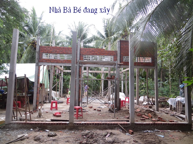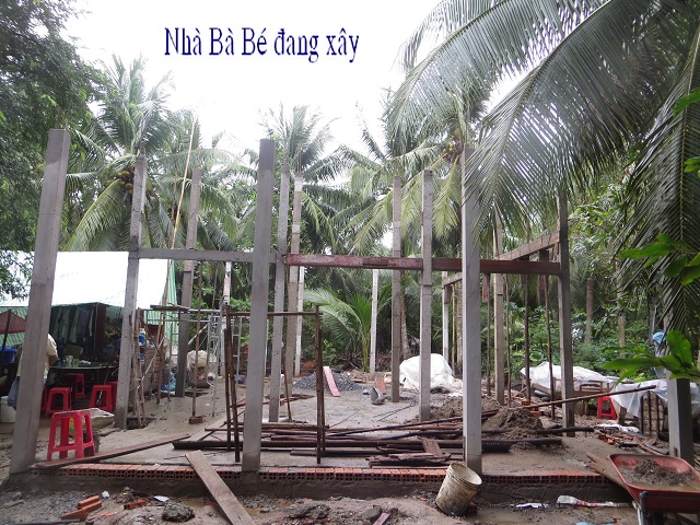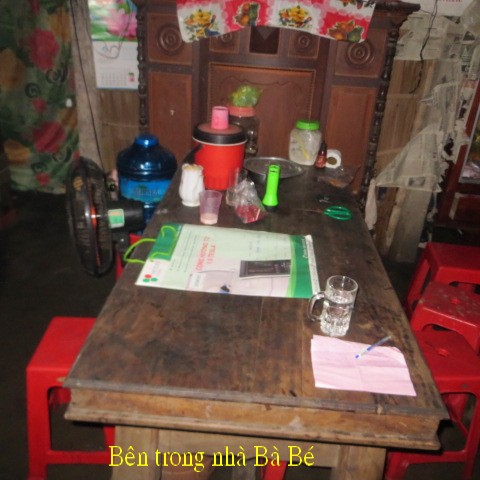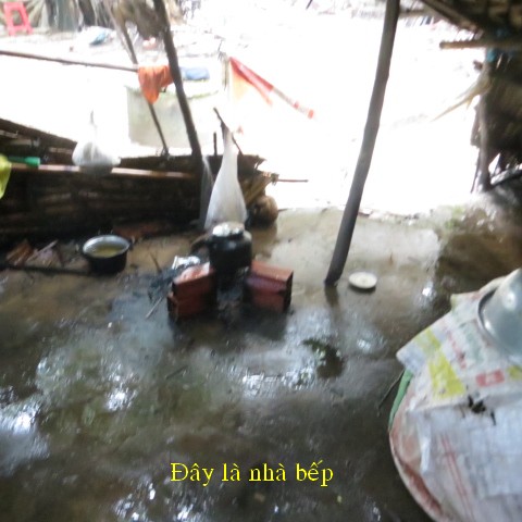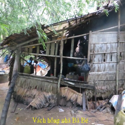 Ms. Nguyen Thi Be, age 67, resides at Thanh A hamlet, Tan Phong village, Thanh Phu district, Ben Tre province. She has heart disease and high blood pressure. Her son, Nguyen Minh Phung, age 27, works as a day laborer to support the family, but 3 months ago had a degenerative spine disease and herniated disk and could no twork anymore. Her younger son is entering grade 12 school this season but has to leave school to go to work to earn money to feed the whole family. (He was not in the pitcture below sine he was working). Her house had collapsed and the roof leaks but they can not afford to rebuild it.