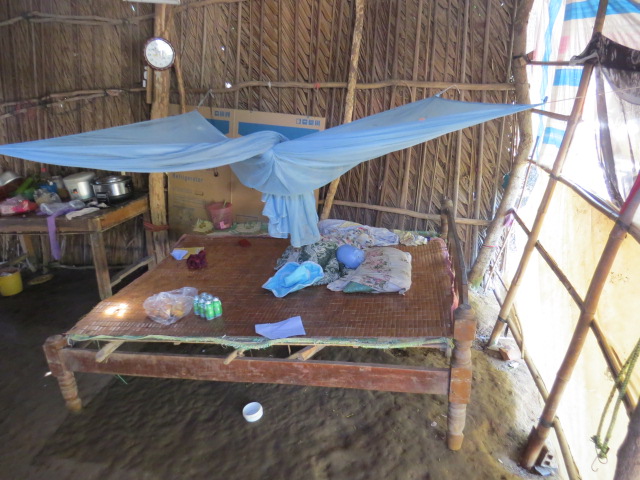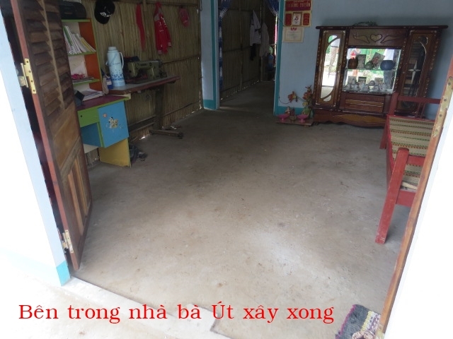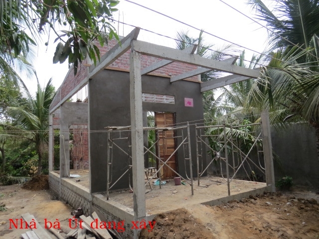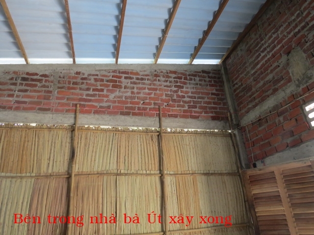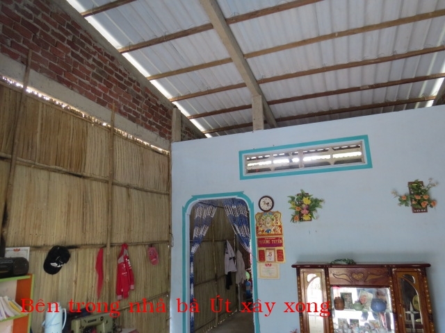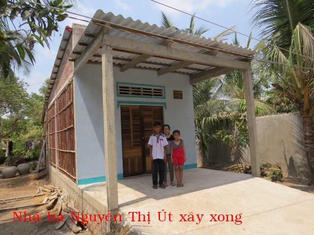 Mrs. Nguyen Thi Ut, age 32, of An Ngai hamlet, An Thanh village, Thanh Phu district, Ben Tre province, is living with her two children. Her husband left them five years ago due to hardship of living. Havning no lands, she makes her living by helping in the kitchen of a noodle restaurant nearby. The house was built more than seven years ago and is leaning on one side and she does not have money for repair.