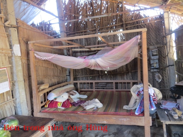 Ông Nguyễn Văn Hùng 47t ở ấp An Điền, xã An Điền huyện Thạnh Phú tỉnh Bến Tre. Gia đình có 5 người: vợ và 3 con, nhà không ruộng đất nên hàng ngày ai thuê gì làm nấy. Căn nhà hiện tại cột đã bị gãy, mái nhà bị sập một bên mà không có tiền cất lại.