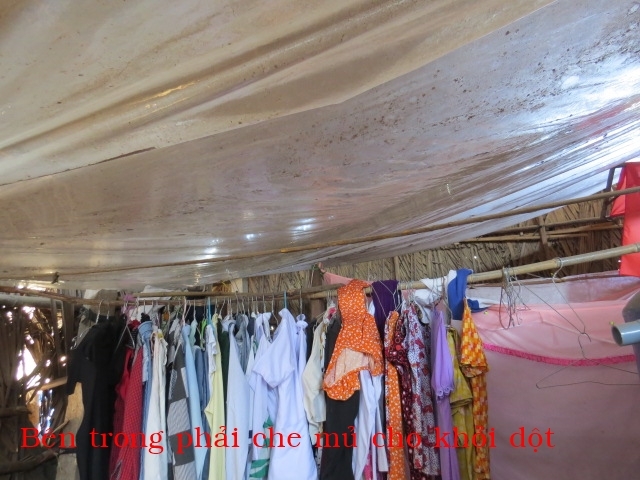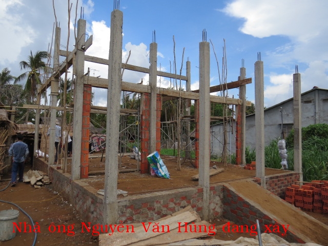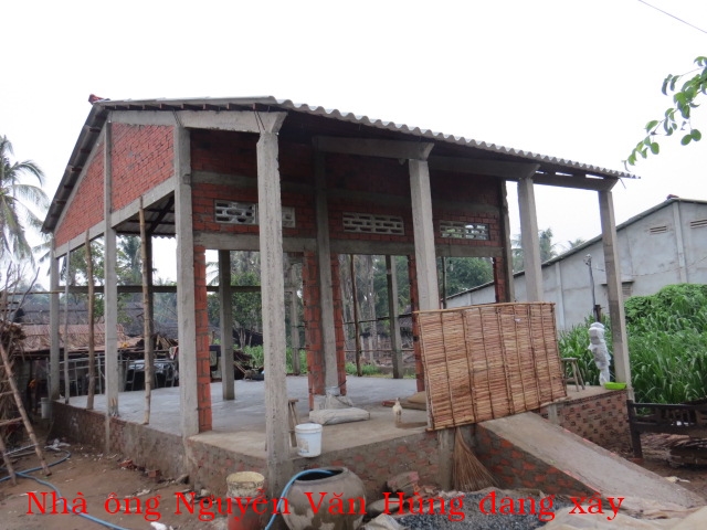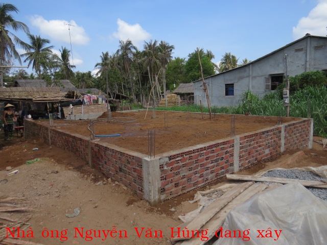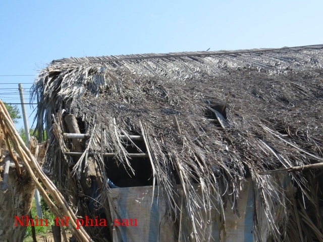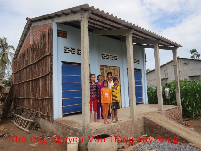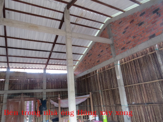 Mr. Nguyen Van Hung, age 47, of An Dien hamlet, An Dien village, Thanh Phu district, Ben Tre province, is living with his wife and their three children. Having no lands to toil on, they are doing odd jobs for their living. The pillar in the house is broken, the roof is collapsed in one side and they don't have any means to repair.