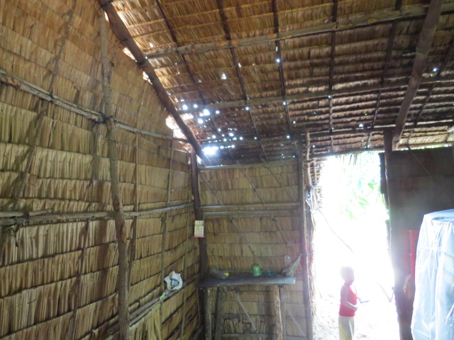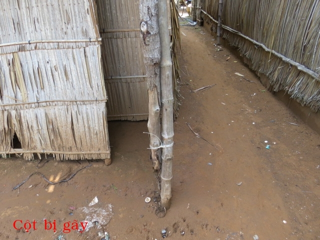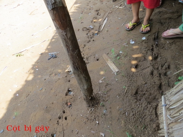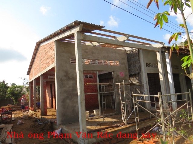 Mr. Pham Van Rac, age 26, of Xeo Dua hamlet, Thanh Hai village, Thanh Phu district, is living with his wife and their two children. They are doing odd jobs, making just enough to buy rice for the day. Their five years old house with adillapidated roof, the pillar is rotten by termites, is leaning to the house next door and can be collapsed any time. When it rains, it is all wet inside out. Since the house can be collapsed, they are putting up with a friend.