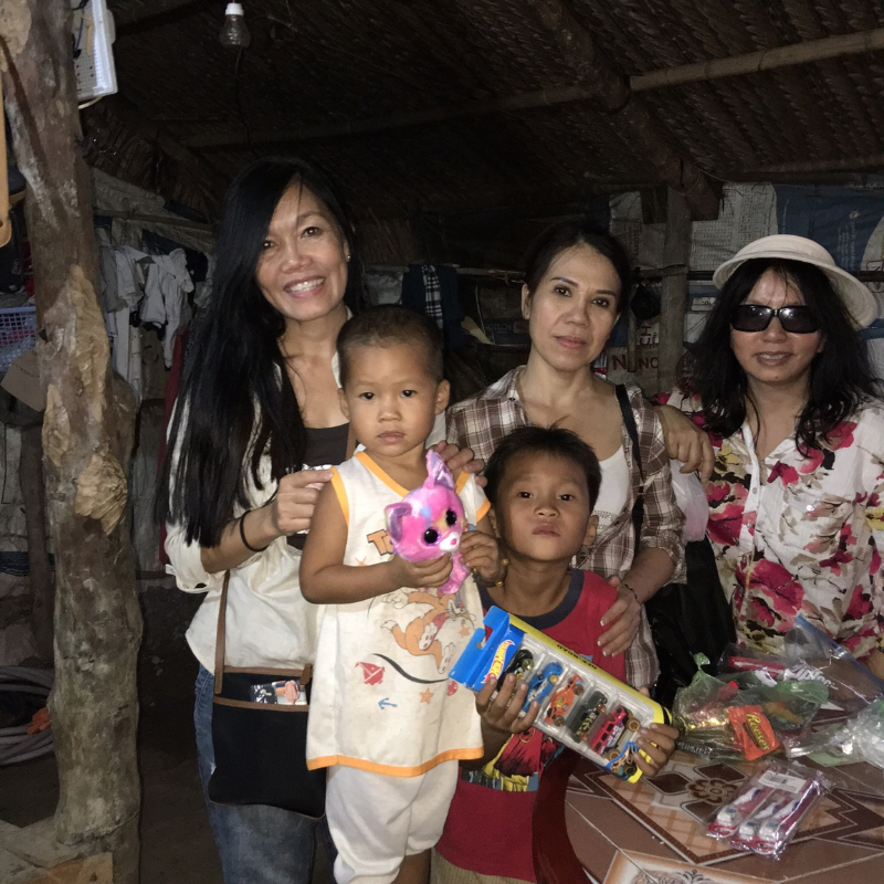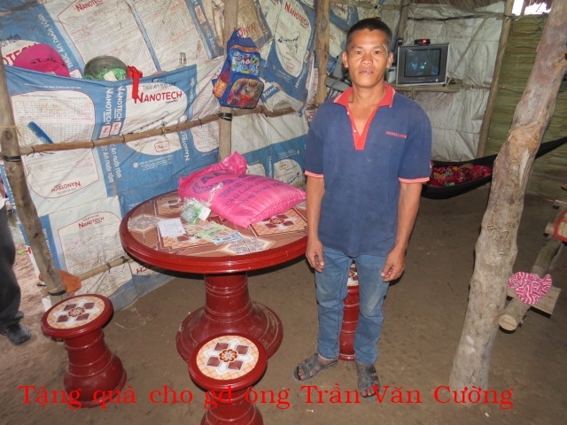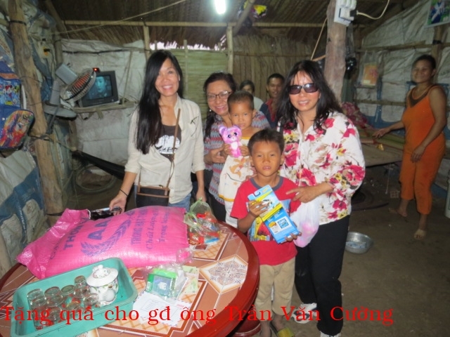 vận động cho gia đình ông một căn nhà tình thương. Đám con nít thì vô cùng mừng rỡ với những món quà của chúng tôi tặng. Còn vợ chồng ông Cường thì có bao gạo chắc