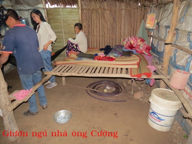 để che những chổ dột, ngay cả cái giường ngủ cũng không có, chỉ là lấy cây đước từ rừng về đóng thẳng vào trụ nhà. Thân cây lòi lõm nằm chổ thấp chổ cao rất tội đám con nít.