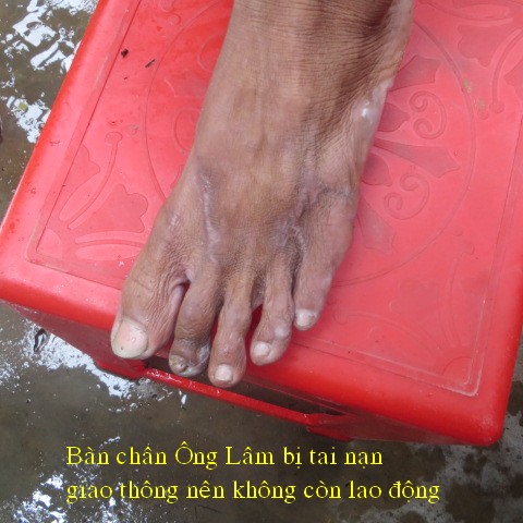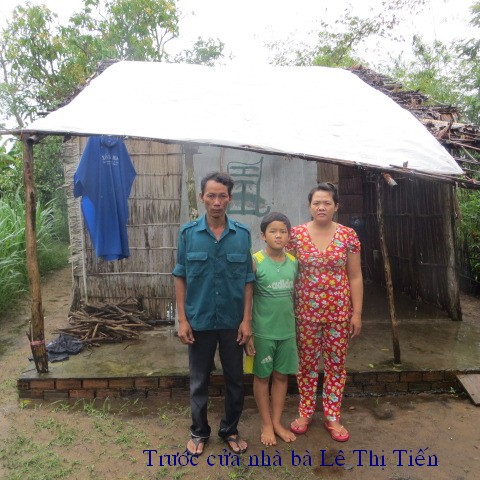 Le Thi Tien, 32 years old, and wife Le Hoang Lam, 35 years old, have a son, Le Hoang Duy, 11 years old in 5th grade. Two years ago, he was involved in a traffic accident which lead replacement of 3 toes on his right foot with stainless steel. He has hard times walking and unable to work. They have no skilled jobs and rely on selling lottery tickets everyday make almost $5/day to survive. Because he’s unable to walk long distance, he borrowed money and bought an used Honda for $300 so he can ride to sell lottery tickets. It will be a very long time before he can pay off the car’s loan. Their house roof is in very poor condition that it leaks whenever it rains. They have no money for repair and barely live with 3 people on $5/day income.