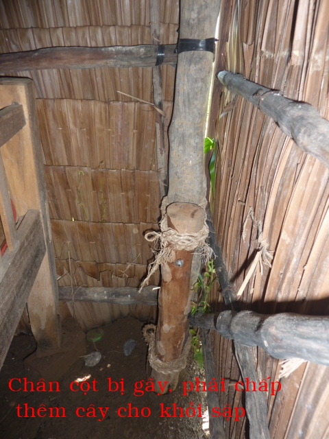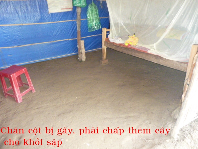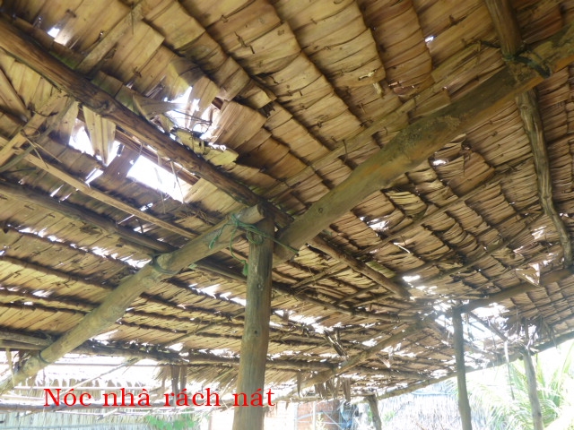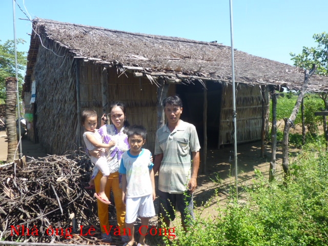 Le Van Cong, 37 years old, resides in Con Tra Hamlet, Thanh Hai Village, Thanh Phu District. He and his wife have two children. Everyday both of them work for hire to clear the weeds and digging; the work is only enough to buy rice. Currently, their house supports are rotten and leaking roof; they don’t have money to rebuild.