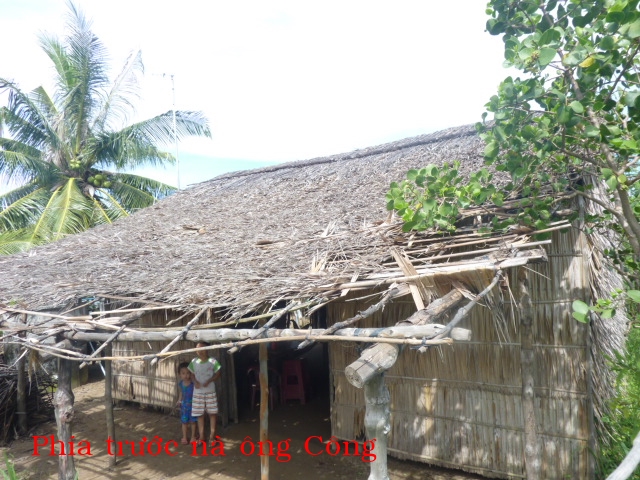 Ông Lê Văn Công 37t ở Cồn Tra xã Thạnh Hải huyện Tạnh Phú. Nhà có 4 người: vợ chồng và 2 con, hàng ngày vợ chòng đi nhổ cỏ, cuốc sắn... thuê nhưng chỉ đủ mua gạo. Căn nhà hiện tại cột đã muc,nóc đã dột nát mà không có tiền cất lại