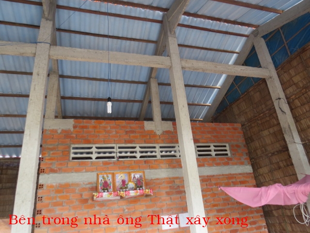 Luu Van That, 39 years old, resides in Con Tra Hamlet, Thanh Hai Village, Thanh Phu District. He and his wife have three children. He does not own any farm land; every day they work whatever job is available. It is unstable and only enough to buy rice. The house was build six years ago but the entrance to the house is so low that one needs to bend down to enter. Currently, the house supports are rotten and could collapse but they don’t have money to rebuild.
