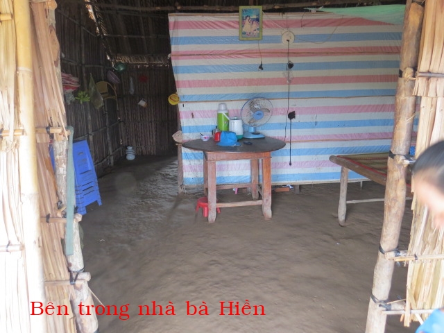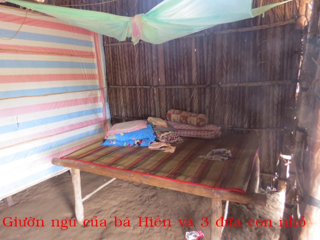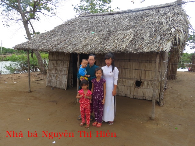 Nguyễn Thị Hiền 37t ở Cồn Rừng xã Thạnh Hải huyện Thạnh Phú. Gia đình có 5 người: bà Hiền và 4 con, đứa con lớn nay học lớp 11. Cách nay khoảng 2 năm vì nghèo mà chồng bỏ dể lại 4 đứa con cho bà nuôi. Hàng ngày bà ai thuê gì làm nấy: có lúc nhổ củ săn, có lúc gánh dưa thuê...Căn nhà dược cất nay hơn 4 năm, hiệ tại chân cột đã bị mục ngang mặt đất nên rất cần nhà (vì gia đình ở sạch sẽ, quét dọn nên hình chụp thấy rất gọn gang