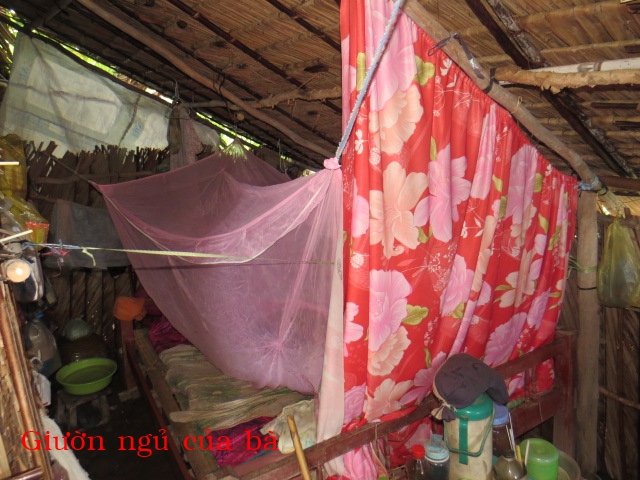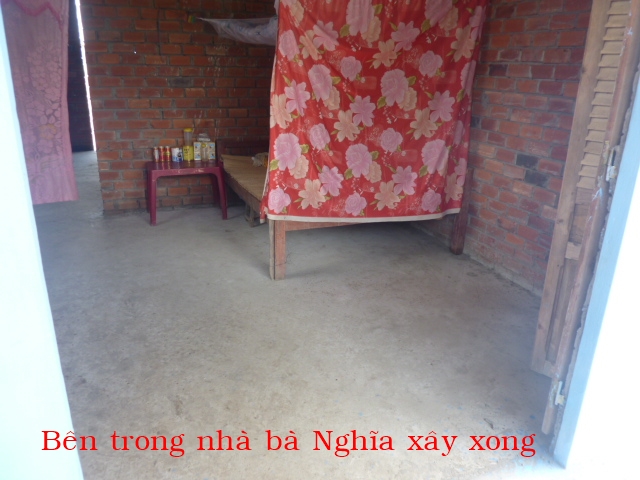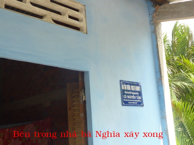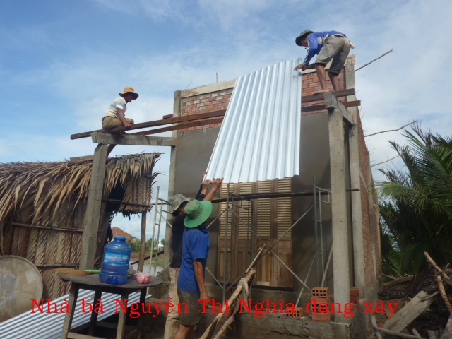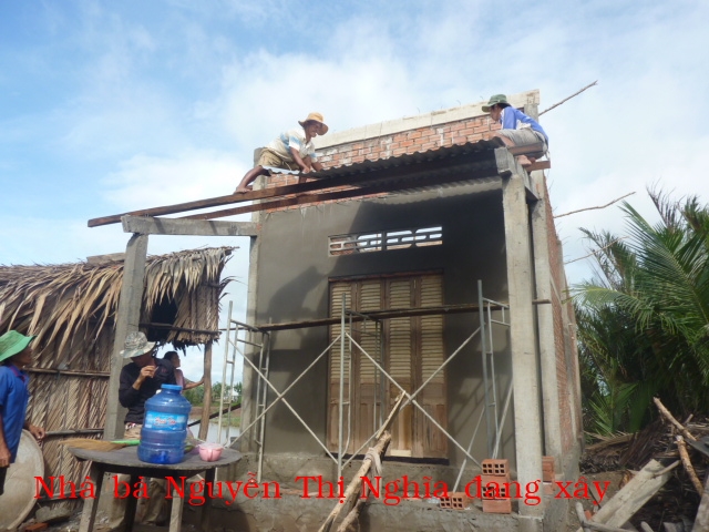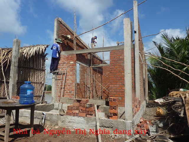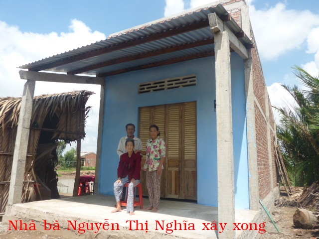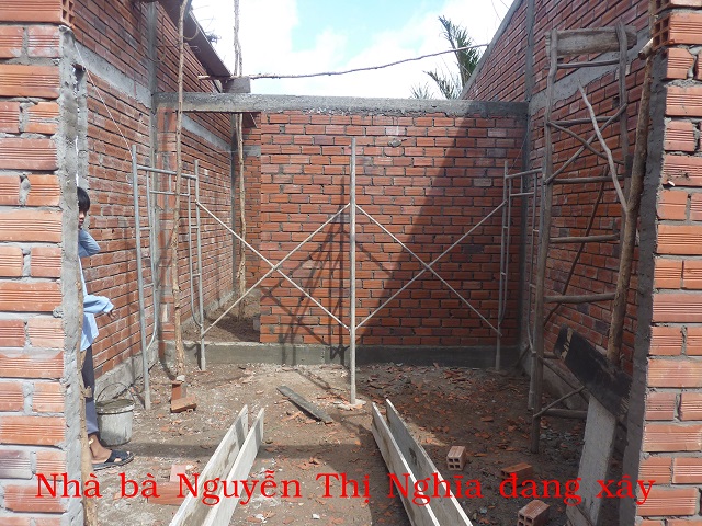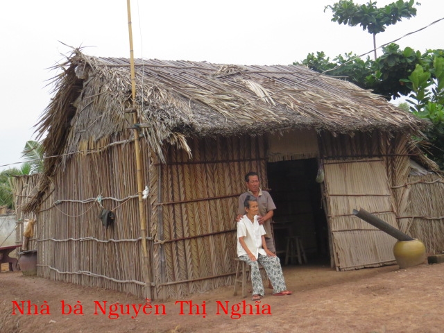 Nguyễn Thị Nghĩa 82t ở Cả Cát xã An Điền huyện Thạnh Phú. Gia đình bà có 3 người: bà và 2 con nay đều lớn tuổi. Người con dâu đi làm thuê không nhà, nhà không ruộng đất hang ngày ai thuê gì thì làm nấy nhưng chỉ làm công việc nhẹ vì lớn tuổi. Căn nhà được làm bang cây bạch đàn kê gốc nay hơn 8 năm hiện tại mối ăn bộp hét ở bên trong nên rất cần nhà ở mới ( vì cả gia đình đều lớn tuổi nên làm chỉ đủ ăn không có dư để sửa nhà lại)