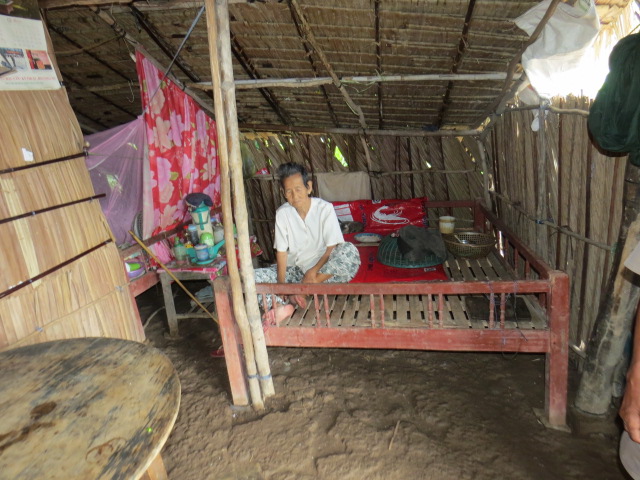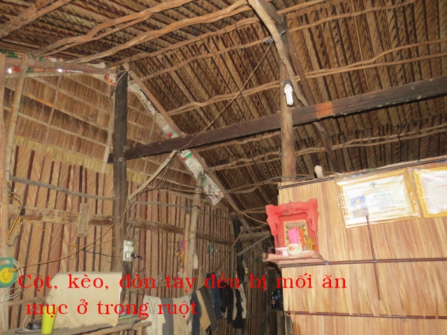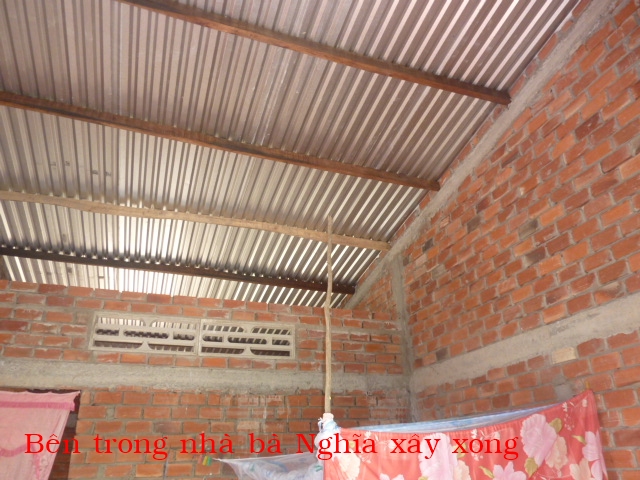 Mrs. Nguyen Thi Nghia, age 82, of Ca Cat , An Điền Village, Thanh Phu District is living with her 2 aging children who do do odd jobs to make their living but cannot take hard work due to their ages. Their 8 year old house is about to collapse with termites destroying the pillars. Due to their old ages and measly income, they desperately need a new house.