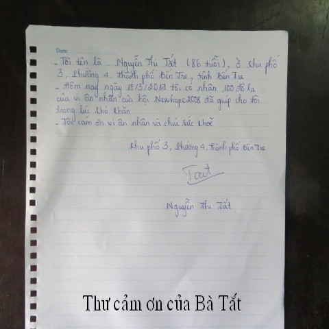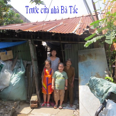 Bà Nguyễn Thị Tắc, 86 tuổi đang ở với người con gái Nguyễn Thị Nga 63 tuổi và 2 cháu ngoại 6 tuổi học lớp 1 và 3 tuổi học Mẫu giáo. Số nhà 118/3 khu phố 3 phường 4, Thành Phố Bến Tre, tỉnh Bến Tre. Hàng ngày bà Nga con Bà Tắc đi nhặt ve chai về bán để kiếm cống qua ngày. Nhà bà Tắc mưa dột nhưng bà khong có tiền cất lại.